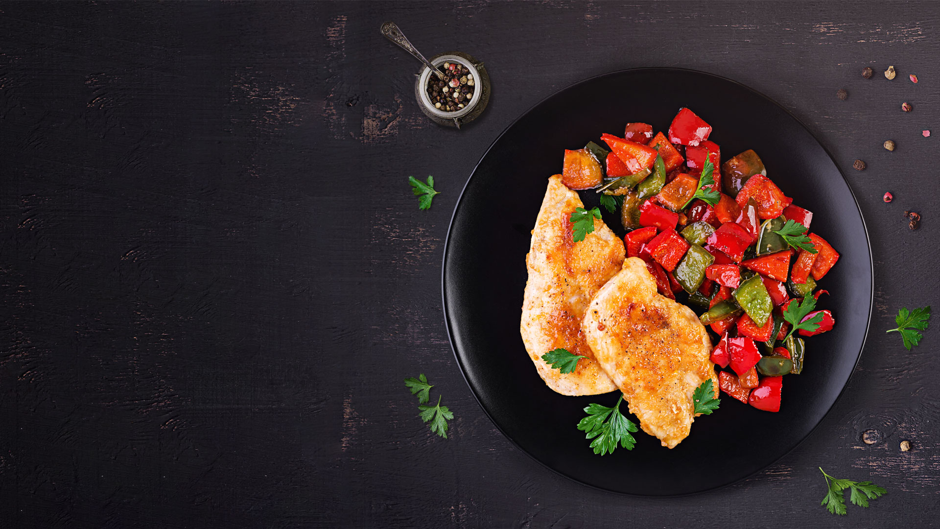 Herzhafte Ofenkartoffel mit aromatischem Grillgemüse – optional mit zarten Putenstreifen